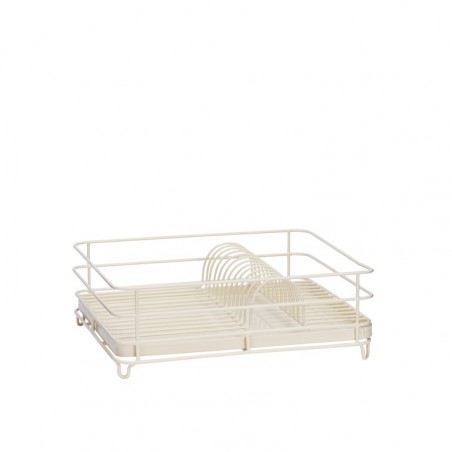 Metalowa suszarka na naczynia Crea od Madam Stoltz, jednopoziomowa, kremowa z tacką na ociekającą wodę. Ręcznie wykonana w Indiach.
