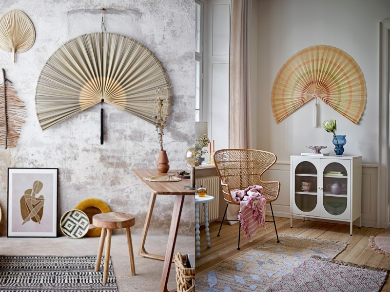 -Wachlarze bambusowe "Jaime" od Bloomingville dostępne w trzech wersjach kolorystycznych: naturalnej, szarej i z kolorowymi akcentami. To dekoracja idealna do wnętrz boho, japandi lub eklektycznych przestrzeni z duszą.