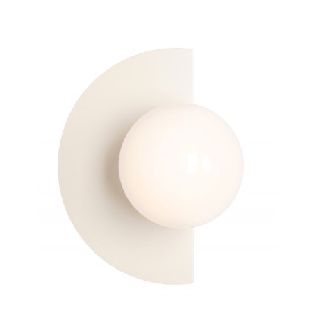 Półkolisty dysk w odcieniu kremowym tworzy harmonijne tło dla klosza z opalowego szkła, rozpraszającego światło w delikatny, nastrojowy sposób. Ten dekoracyjny kinkiet ścienny sprawdzi się idealnie w nowoczesnych aranżacjach, zwłaszcza w sypialni, korytarzu, czy salonie, gdzie liczy się zarówno funkcjonalność, jak i estetyka.
