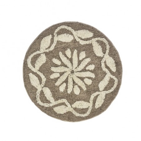 Okrągły dywanik łazienkowy Madam Stoltz, bawełniany, antypoślizgowy, inspirowany naturą i kulturą Indii. Praktyczny i stylowy.