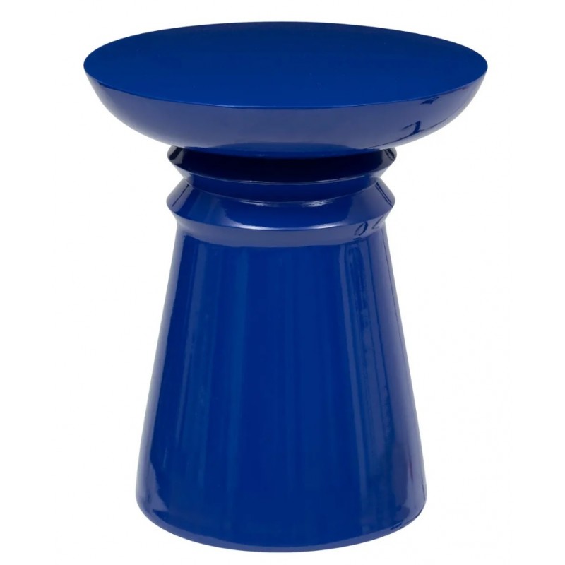Materiał wykończenia mebla to metal, co gwarantuje jego trwałość i odporność na uszkodzenia. Dodatkowo, stolik ma wyjątkowy wyrazisty, kolor indygo w błyszczącym wykończeniu - jest to propozycja dla osób, które cenią nietuzinkowe połączenia i oryginalność. Jaya doda modnego akcentu do przestrzeni w której zostanie ustawiony. Blat stolika oparty jest na nodze o kształcie masywnego stożka.