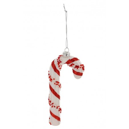 Bombka w kształcie tradycyjnej laski cukrowej w biało-czerwone paski to ponadczasowa ozdoba, która doda choince słodkiego, świątecznego uroku. Lekka, połyskująca i uniwersalna, idealna do klasycznych dekoracji, stroików i prezentów.