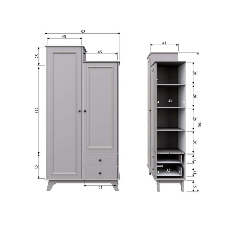 Szafa Lily, odcienie szarości, Woood